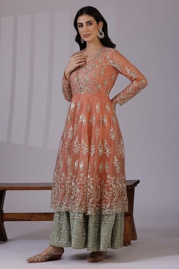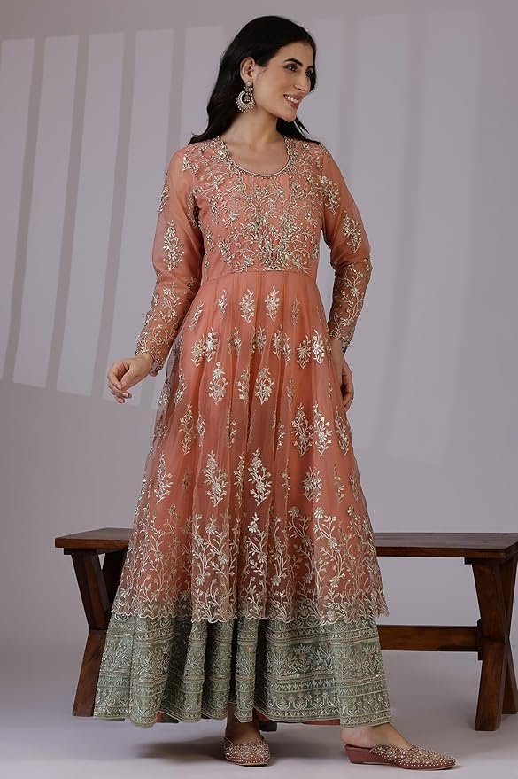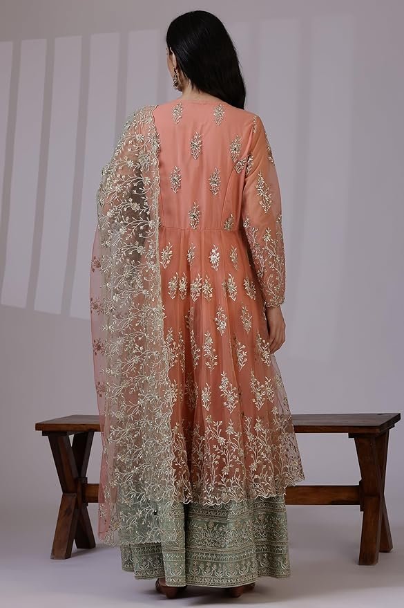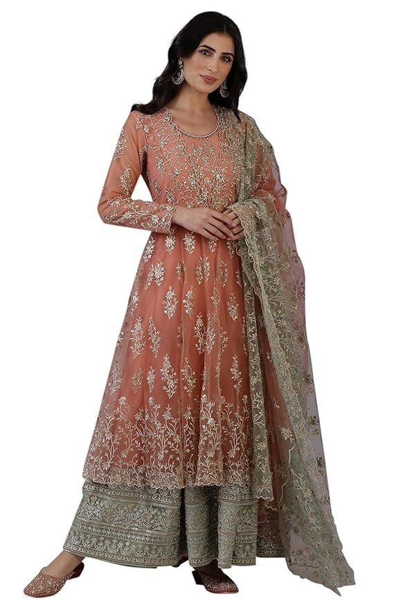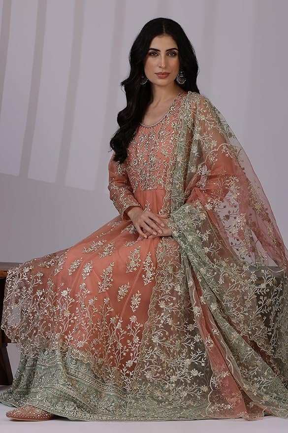 • Style this beautiful heavy festive dress and dupatta set with our jewellery and heels to get statement look.